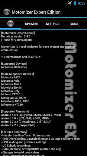 Motomizer is a tool designed for easy system and settings optimization.